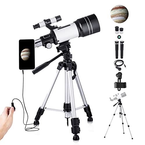 - 【Astronomical Telescope】70mm large-diameter, BAK4 prism system, 300mm focal length, large view. Fully multi-coated lens, high transmission, enhance image brightness and clarity, perfect for observing aurora, moon, planets, meteor, scenery, bird.